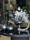 Yapay Çiçekli Gümüş Yuvarlak Vazo 3 Parça Set No:12