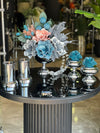 Yapay Çiçekli Gümüş Yuvarlak Vazo 5 Parça Set No:1