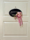 Yapay Çiçekli Oval Ahşap Kapı Süsü No:33