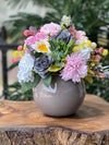 Yapay Renkli Çiçekli Cam Vazo Gri
