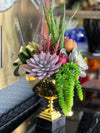 YAPAY SUKULENTLİ GOLD AYAKLI VAZO