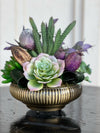 Yapay Sukulentli Küçük Boy Çizgili Yassı Vazo No:1