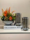 Doğal görünümlü yapay sukulentlerle tamamlanmış, şık çizgili metal vazo; evinize, ofisinize ya da hediye seçimlerinize modern bir hava katacak. Zamansız tasarımı sayesinde her köşeye uyum sağlar, bakım gerektirmeden uzun ömürlü kullanım sunar. Minimalist stilin göz alıcı bir temsilcisi!İKİLİ mumluk ve kitap kutusuyla setinizi tamamlıyoruz