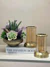 Doğal görünümlü yapay sukulentlerle tamamlanmış, şık çizgili metal vazo; evinize, ofisinize ya da hediye seçimlerinize modern bir hava katacak. Zamansız tasarımı sayesinde her köşeye uyum sağlar, bakım gerektirmeden uzun ömürlü kullanım sunar. Minimalist stilin göz alıcı bir temsilcisi!İKİLİ mumluk ve kitap kutusuyla setinizi tamamlıyoruz