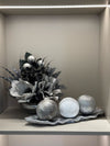 Yeni sezon üçlü dekoratif top tepsimiz ve zarif çiçekli vazomuz, gümüş tonların asaletiyle buluştu.